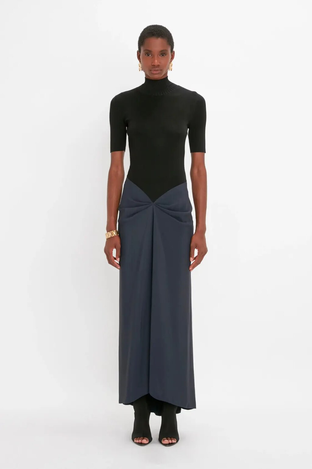 Polo Neck Gathered Dress In Midnight